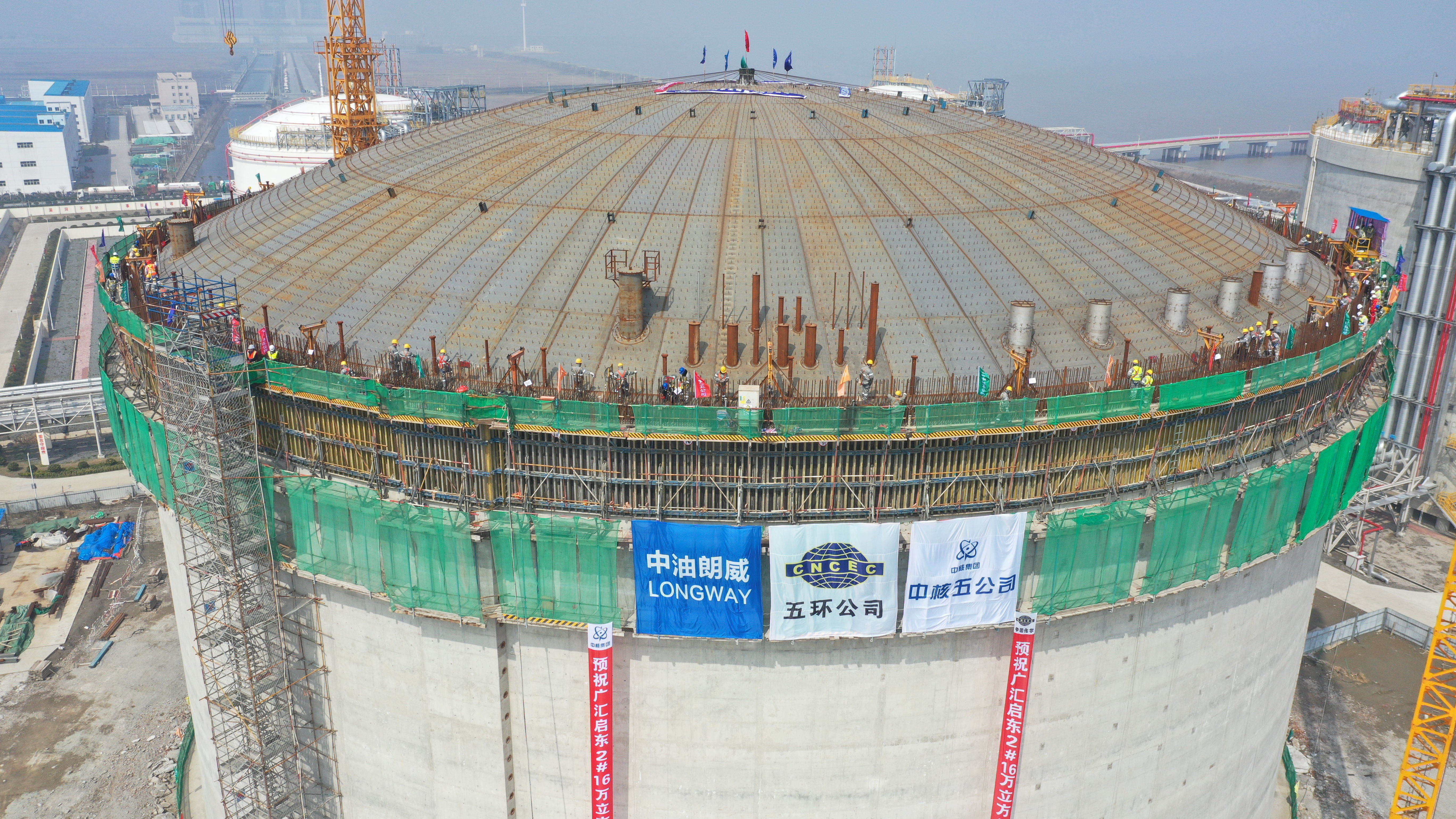 3月4日,中国化学所属中国五环工程有限公司自主设计的广汇启东2#16万立方米LNG储罐穹顶结构气压升顶圆满成功,这也标志着项目的建设已从外罐作业全面转入内罐安装。