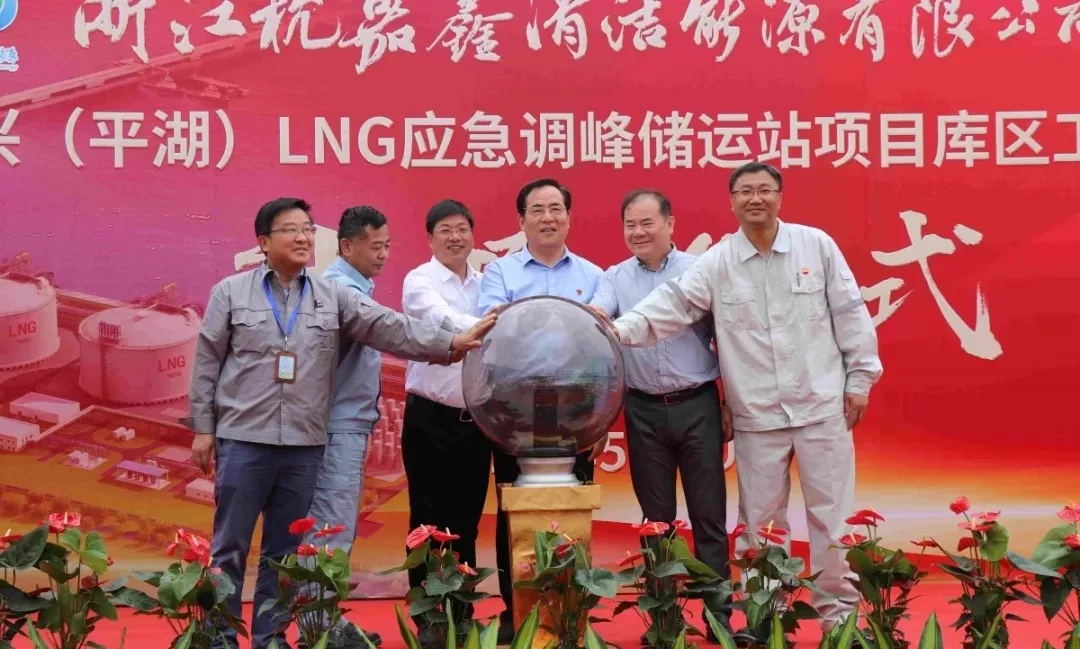 5月30日,寰球公司浙江嘉兴(平湖)LNG应急调峰储运站项目库区工程一号储罐升顶仪式在现场隆重举行。