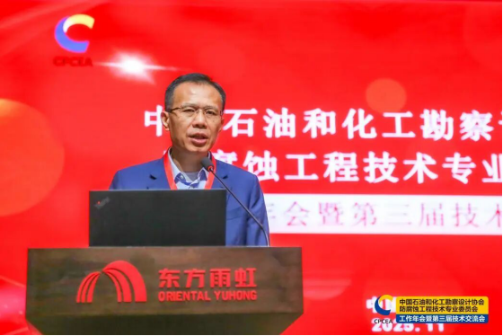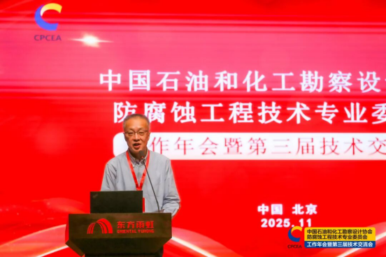 2025 年 11 月 6 日至 7 日,中国石油和化工勘察设计协会防腐蚀工程技术专业委员会 2025 年度工作年会暨第三届技术交流会在承办单位北京东方雨虹防腐技术有限公司(以下简称 “东方雨虹”)总部科技园成功举办。协会常务副理事长兼秘书长荣世立出席大会。来自全国各地的专委会委员、特邀委员、行业专家、院校教授及企业家代表等八十余人齐聚一堂,共话防腐蚀工程技术发展新路径。会议由防腐蚀专委会秘书长张钧钧主持。